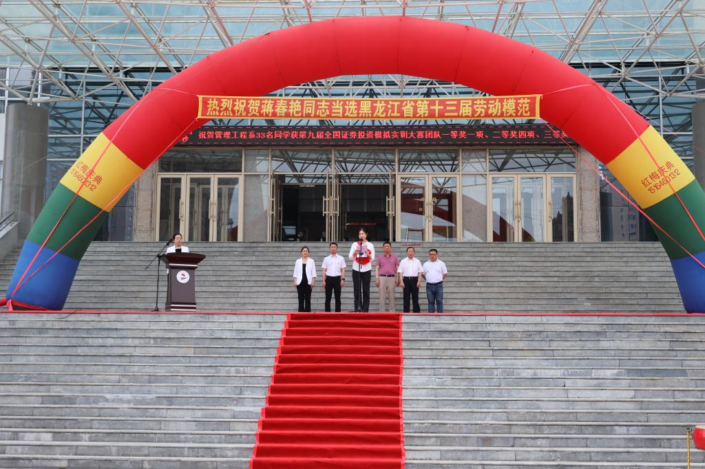 省劳模蒋春艳作表态发言:感谢学校推荐自己为黑龙江省第十三届劳动模范,感谢学校对自己29年来工作的认可,感谢学校领导和同事们的支持。从与学生一起进考场参加自学考试,到联系企业送学生去实习实践,再到与同事们一同经历本科教学工作合格评估,为学校的发展略尽绵薄之力。29年来,深刻感受到:个人在组织中,成长有方向,付出的努力有组织认可,这是人生的幸福,让我们继续携手奋进,为开创学校更加美好的明天而努力工作。