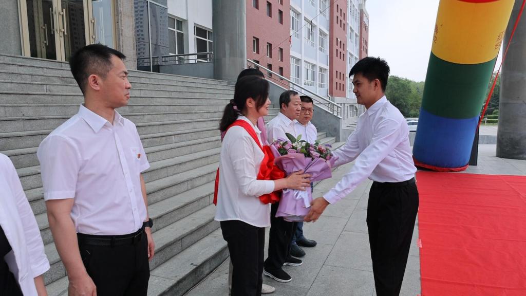 郭书记指出,学校办学31年来取得的优异成绩,得益于学校有一批默默奉献、务实求真的教师队伍。蒋春艳同志是他们当中的杰出代表,她来校工作的29年,始终以大局为重,爱岗敬业、履职尽责,在学校各个发展阶段做出了突出贡献,同时也为自己赢得了荣誉,为全体师生树立了标杆。郭书记希望,全体师生继承和发扬老一辈创业者的奋斗精神,弘扬劳模精神,向劳模学习、向榜样看齐,在全校形成尊重、学习和争当劳模的新气象。郭书记强调,全体教职员工要紧紧围绕学校中心工作,将光荣的劳模精神发扬光大,用劳模的感召力、影响力带动和激励全校师生投身工作和学习中,在实现学校高质量发展的征程中建功立业,在建设创业型大学的历史进程中铸就辉煌,以优异成绩向党的二十大献礼!