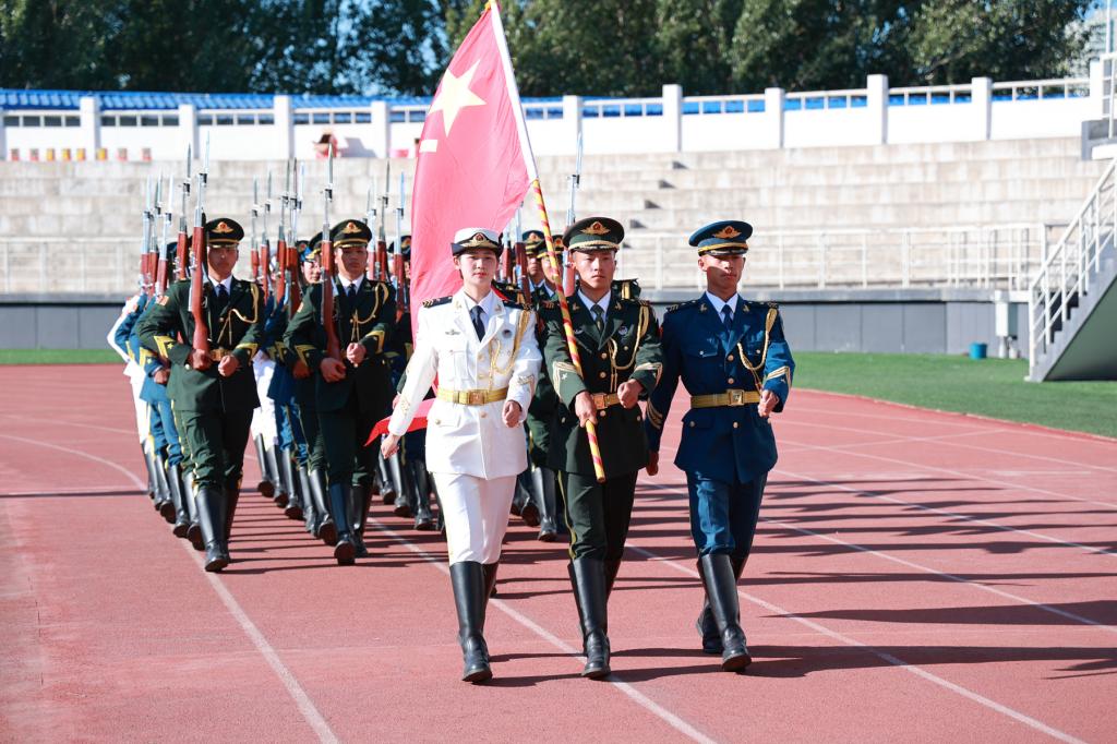 在学长教官团团长孙志屹的指挥下,全体新生以分列式、匕首操、盾牌操、刺杀操、战术格斗等精彩表演,展示了军训成果。学长教官团军旗护卫队英姿飒爽,赢得了现场师生的阵阵掌声。