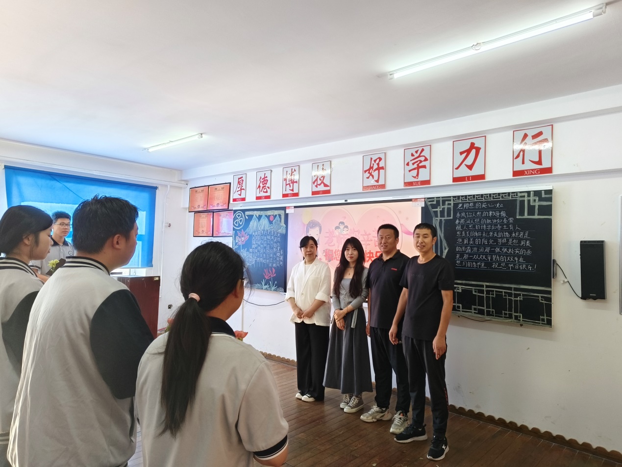 此外,9月10日清晨,各班级还自发组织了丰富多样的祝福仪式。同学们纷纷献上了亲手制作的节日贺卡、亲手编制而成的花束,用这份承载着满满心意的礼物,为老师们送上了温馨的节日祝福。看着老师们脸上绽放的幸福笑容,我们深知这不仅仅是一份情感的流露,更是对教育事业未来的殷切期盼。